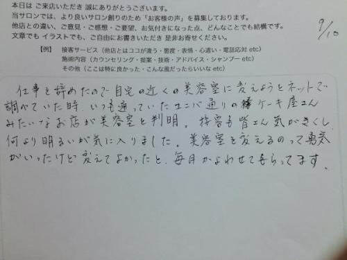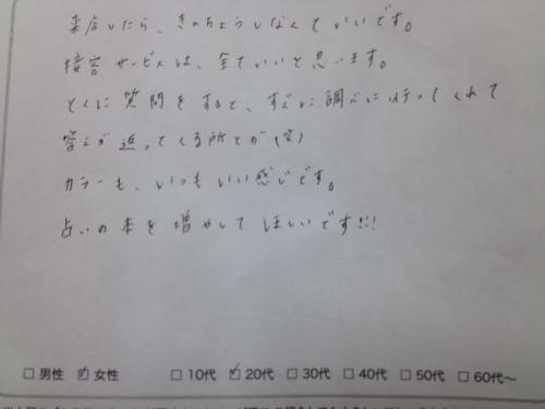 ここではご来店頂いた方よりのご意見やご感想の一部をご紹介させて頂きます。