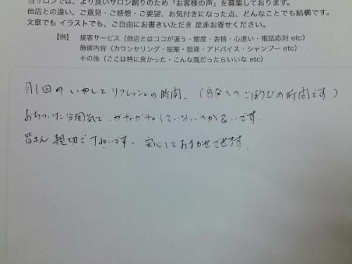 シャンプーやトリートメントの時のマッサージはじっくりやっていただけて大満足でした
